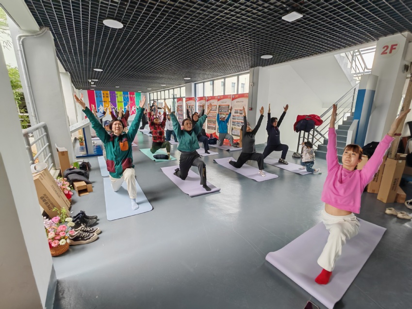 活动中,江苏转化瑜伽研究院许悦老师和她的团队成员崔庆媛、刘睿璇老师为大家深入浅出地讲解了转化瑜伽的练习要领及技巧等。在老师们耐心细致的指导下,在方寸大的垫子上,在一呼一吸间,大家舒展身姿、调息、冥想,时而盘腿而坐,时而单腿站立,时而曲腿展臂......感受内心的变化和身体的力量,在一次次的呼吸与动作的协调中,大家的身心逐渐放松,进入轻松宁静的瑜伽世界。