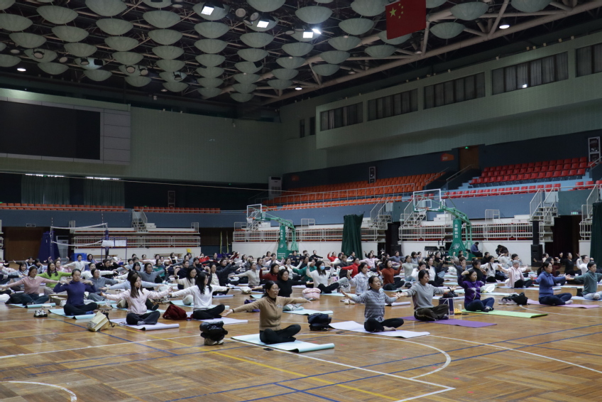 为隆重纪念“三八”国际劳动妇女节,倡导健康生活,助力广大女教职工舒缓压力,提升身心状态,3月7日下午,由校工会主办的校女教职工瑜伽健身活动在灵谷寺校区和仙林校区同时举行。在灵谷寺校区体育馆,校党委常委、副校长鲍勤,校关工委执行副主任李江及我校一百多名女教职工参加了活动。校机关党委书记、工会兼职副主席王利雅主持活动。