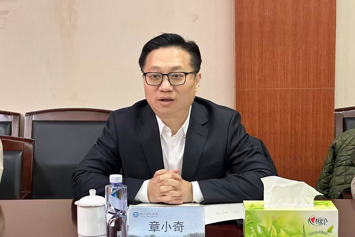 章小奇在讲话中对南京体育学院的热情接待表示了感谢。他高度评价了南体在凝练打造特色办学模式、推动竞技体育事业高质量发展等方面取得的突出成绩。他全面的介绍了南京体育产业集团发展历程、在推动体育产业发展方面取得的重大成效和未来发展愿景等情况。他强调,南京体育产业集团将紧密围绕南京市委、市政府交办的“利用放大青奥品牌、盘活公共体育资源、创新发展体育产业”三项任务,积极探索“体育+”融合发展模式。希望双方就“体卫融合”“体教融合”“体旅融合”等展开深度交流合作,推动集团与高校之间实现优势互补和资源共享,共促双方发展。