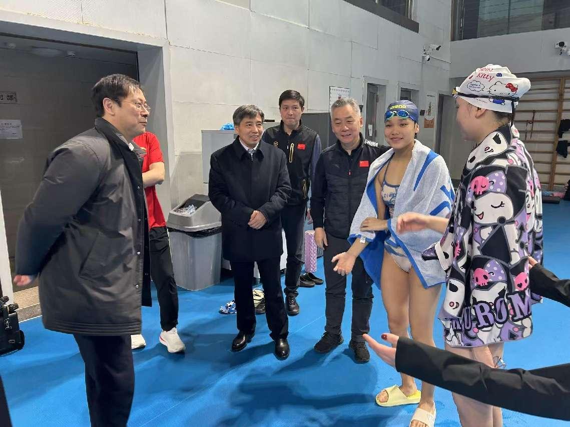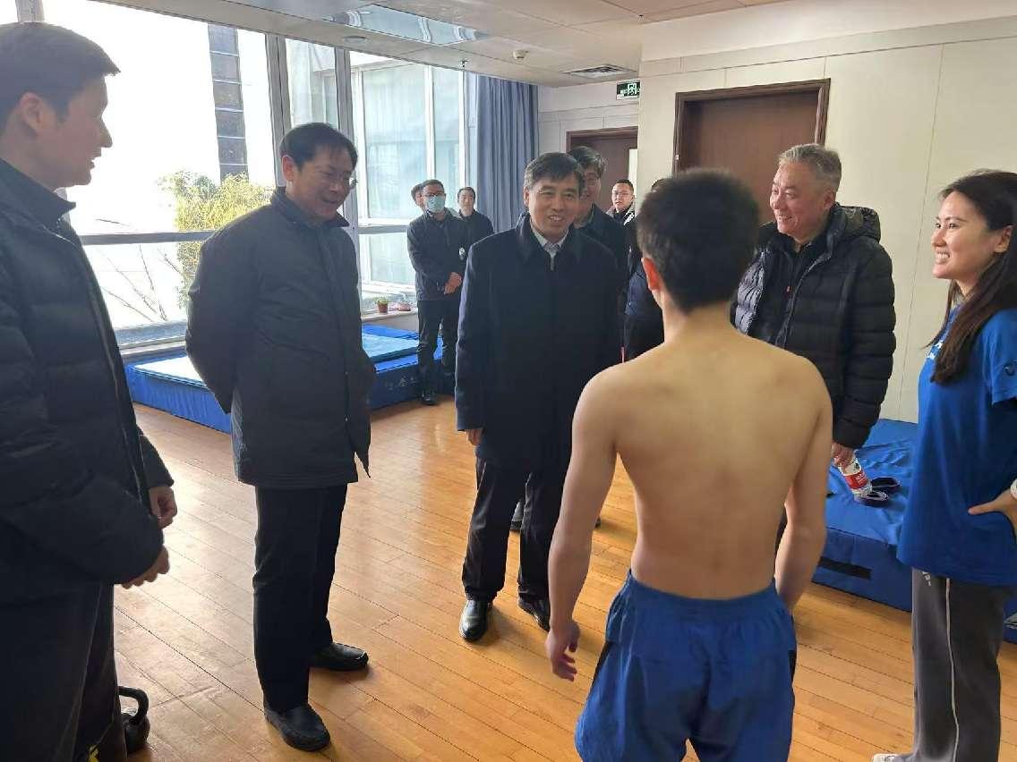 新春将至,在十五届全运会前最后一个冬训的关键时期,1月22日-23日,校党委书记刘红明,校党委副书记、校长吴兵成,副校长刘健、陈爱国一行前往北京看望慰问正在紧张备战十五届全运会的我校运动员、教练员和科医保障团队。副校长张军参加了在京慰问活动。校领导一行先后赴国家体操队、游泳队、花样游泳队、羽毛球队、跳水队,了解我校运动员十五届全运会备战情况,并对全体备战人员致以新春问候。
