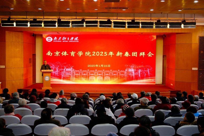 1月15日上午,南京体育学院2025年离退休老同志新春团拜会在图书馆第一报告厅举办。校领导刘红明、吴兵成、兰亚明、鲍勤、刘健、陈爱国、刘海宁,党委常委许立俊、王猛、殷怀刚以及后勤处、工会等部门负责人与我校离退休老同志欢聚一堂,共贺新春。团拜会由校党委常委、副校长刘健主持。