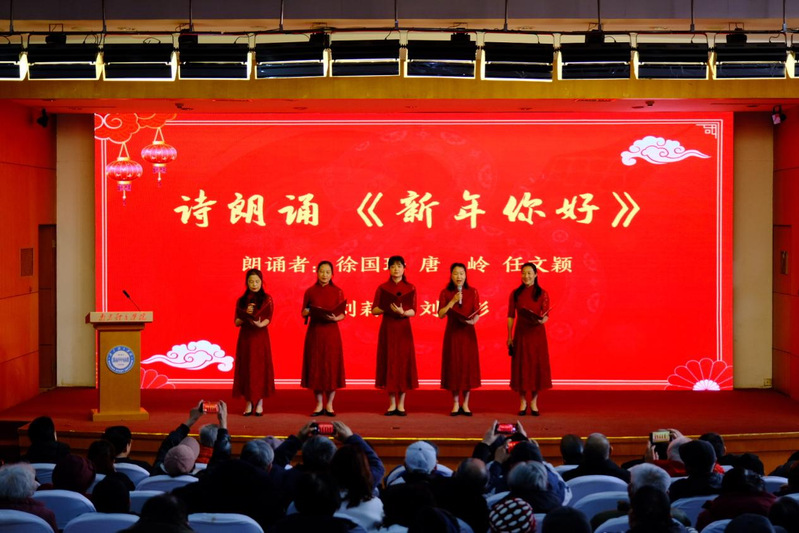 团拜会正式开始前,与会人员一同观看了《传承与梦想:奋进中的南京体育学院》宣传片、2024年离退休老同志文体活动介绍片,回顾了学校各项大事记及2024年离退休老同志参加的各类精彩活动。团拜会上,大家共同收看2024年离退休热心公益奖宣传片,了解获奖老同志的公益事迹并聆听了离退休热心公益奖获奖代表蔡森的发言。与会老同志们还带来了诗朗诵《新年你好》、《唐诗里的中国》。在喜庆的拜年音乐中,2025年新春团拜会圆满落幕,与会老同志们相约:来年再会。