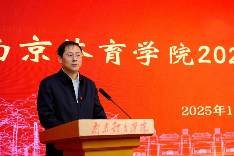 党委副书记、校长吴兵成致新春贺词。他代表校党委、校行政向全体离退休老同志致以新春祝福并向大家简要通报了学校2024年的工作成果和2025年的工作计划。他表示,过去的2024年,学校认真落实上级各项决策部署,抢抓新时代办学发展新机遇,教育教学、竞技体育、学科科研、人才队伍建设、校园治理和条件保障等各项事业均不断向前迈进。2025年,面对第十五届全运会、本科教学审核评估、申博工程指标优化达标、新校区建设立项推进、办学治理体系综合改革等一系列大战大考,希望离退休老同志们继续保持老骥伏枥、老当益壮的积极心态,在关心与支持学校事业发展中持续发挥政治优势、威望优势和经验优势,为建设南京体育学院建设发展贡献更多的智慧、汇聚更大的力量。