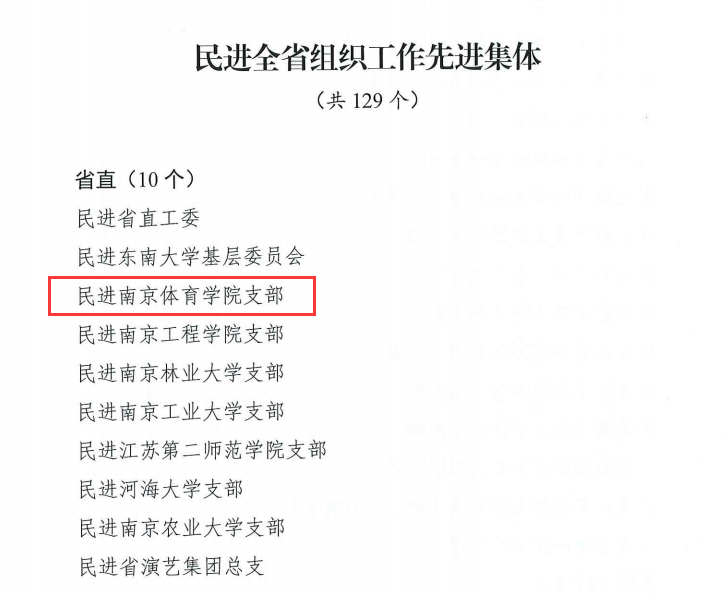 近日,在民进江苏省委表彰大会上,民进南京体育学院支部因卓越的组织工作荣获“民进江苏省组织工作先进集体”荣誉称号。这一殊荣彰显了我校民进南体支部在发展会员、凝聚力量、推动社会服务等方面的优异表现。