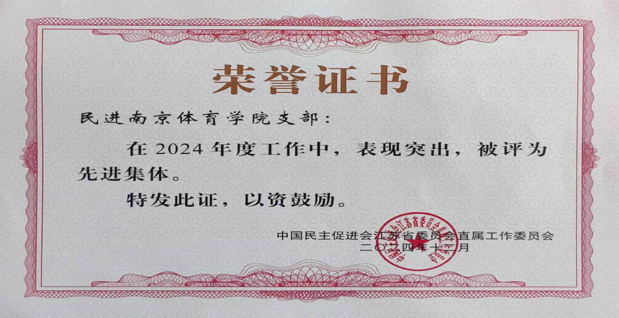 近日,民进江苏省直工委会公布了2024年度先进集体和先进个人名单,民进南京体育学院支部荣获“先进集体”称号,多位会员被授予“先进个人”荣誉称号,彰显了支部在履行职责、服务社会方面的突出表现。