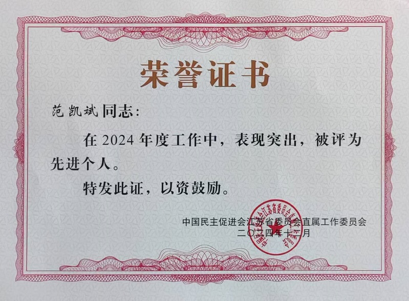 范凯斌博士荣获2024年度先进个人称号