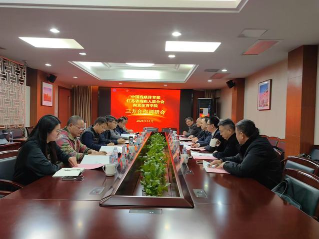 12月26日下午,中国残联体育部、江苏省残联、南京体育学院三方合作调研会在办公楼301会议室举行。校党委书记刘红明会前与来访的中国残联体育部马历涛处长、江苏省残联副理事长夏威进行了交流。校党委常委、副校长陈爱国出席调研会并致辞。校党委常委,党政办主任王猛参加会前交流。