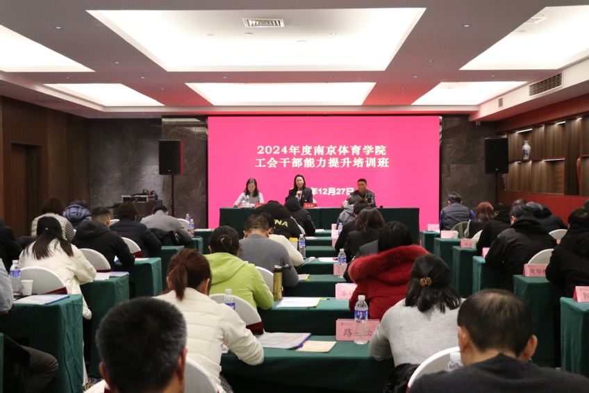 为进一步深入学习贯彻党的二十届三中全会精神特别是习近平总书记关于工人阶级和工会工作的重要论述,进一步深化工会工作改革创新,着力提升我校工会干部的理论素养和业务水平,助推新时代工会工作高质量发展,12月27—28日,校工会在扬州举办2024年南京体育学院工会干部能力提升培训班。党委常委、副校长肖爱华,机关党委书记、工会兼职副主席王利雅出席开班仪式。校第五届教代会执委、工会各委员会委员、各分工会主席、各分工会干部、各协会秘书长等近60人参加了培训。