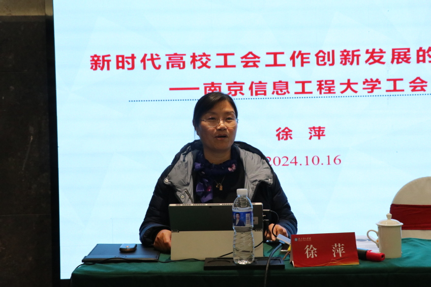 随后,南京信息工程大学工会主席徐萍为大家作了题为《新时代高校工会工作创新发展的实践与思考》的专题讲座。徐萍从新时代高校工会工作面临的挑战与机遇、南京信息工程大学工会工作思考与实践、个人工作经验总结等方面详细介绍了南信大校工会工作的做法和创建“全国模范职工之家”的经验,分享了工作心得与体会。讲座案例详实生动,见解深刻,赢得学员们的热烈掌声。