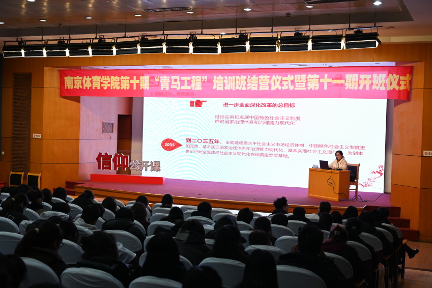 为学习贯彻党的二十届三中全会精神,培养一批“立大志、明大德、成大才、担大任”的时代新人,12月23日,南京体育学院第十期“青马工程”培训班结营仪式暨第十一期开班仪式在图书馆第一报告厅举行,校党委常委、副校长肖爱华,校团委书记陆春龙出席仪式,各二级学院分管共青团工作的党总支副书记、团组织负责人、校级团学组织骨干和参训学员参加开班仪式。本次仪式由校团委副书记郎君儒主持。