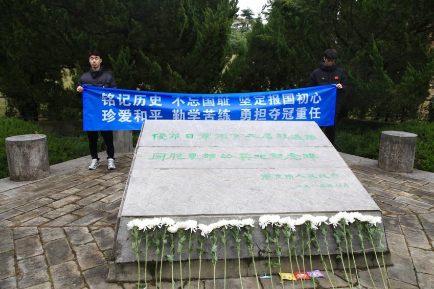 校党委副书记兰亚明指出,国家公祭日是对历史的铭记,更是对未来的警醒。我们必须铭记这段苦难历史,牢记使命,为建设体育强国、构建人类命运共同体、实现中华民族伟大复兴的中国梦贡献力量。乒羽学院关工委执行副主任凌波简要介绍了东郊丛葬地的有关情况,详细讲述了那段残酷的历史真相。他强调,青年一代要珍惜当下,挺膺担当,将竞技体育发扬光大,为国家争光。
