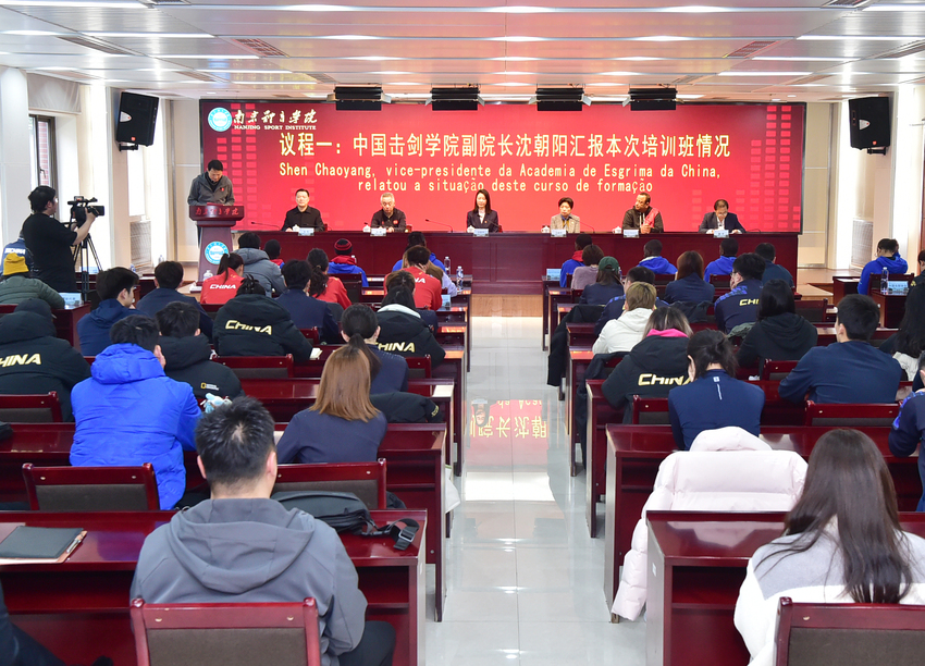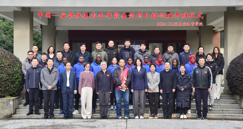 12月5日上午,中国-安哥拉体育合作暨击剑项目培训班在南京体育学院行政楼101会议室隆重开班。国家体育总局自行车击剑运动管理中心副主任、中国击剑协会副主席兼秘书长王峻燕,安哥拉击剑协会主席梅文•佩雷拉,南京体育学院党委常委、副校长,中国击剑协会副主席肖爱华,南京体育学院党委常委、副校长刘健出席了本次开班仪式。会议由南京体育学院原党委常委、副校长,中国击剑学院执行院长金松主持。