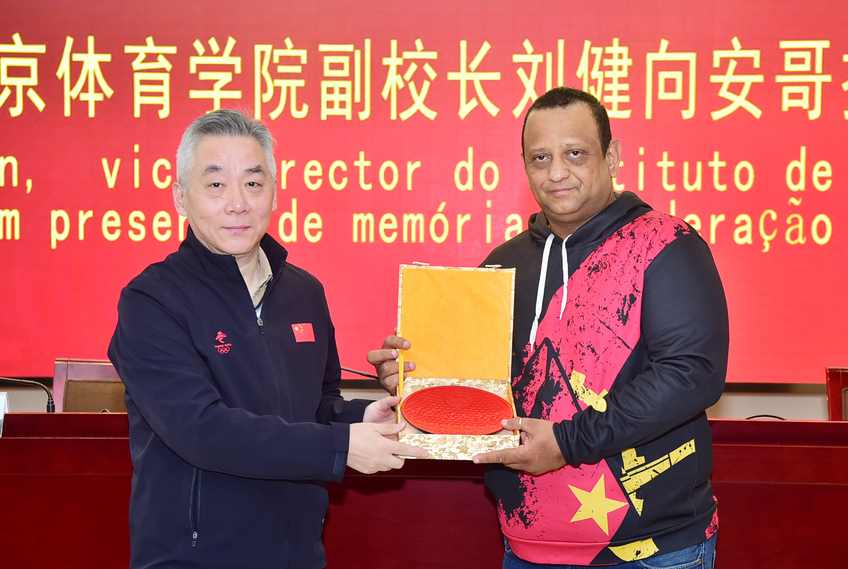 南京体育学院副校长刘健向安哥拉击剑协会赠送纪念礼品