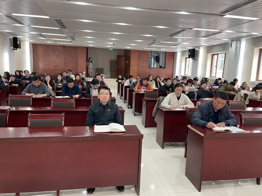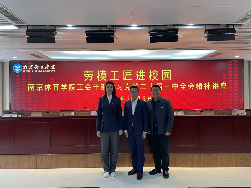 为深入学习宣传和贯彻落实党的二十届三中全会精神,以改革创新精神推动工会工作高质量发展,大力弘扬“劳模精神、劳动精神、工匠精神”,提高我校工会干部业务能力和综合素质,12月5日下午,校工会在行政办公楼101会议室举办“劳模工匠进校园”宣讲活动。本次活动邀请省五一劳动奖章获得者、南京师范大学马克思主义学院王磊教授作《为中国式现代化提供强大动力和制度保障——学习贯彻党的二十届三中全会精神》专题讲座。党委副书记兰亚明,党委常委、副校长肖爱华出席活动。校工会委员会委员、工会各专职委员会委员、各分工会干部、机关党委理论学习中心组成员、马克思主义学院教师近80人参加了活动,校工会主席张健主持活动。