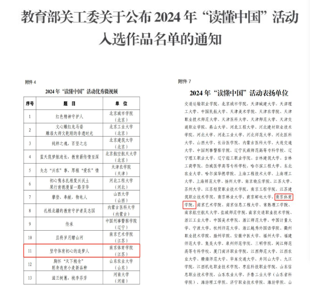 日前,教育部关工委公布2024年“读懂中国”活动评审结果,我校关工委报送的微视频《坚守体育初心的追梦人》获优秀微视频奖,同时我校还获得教育部关工委的表扬,这也是我校首次获得教育部关工委“读懂中国”活动的最好奖项。