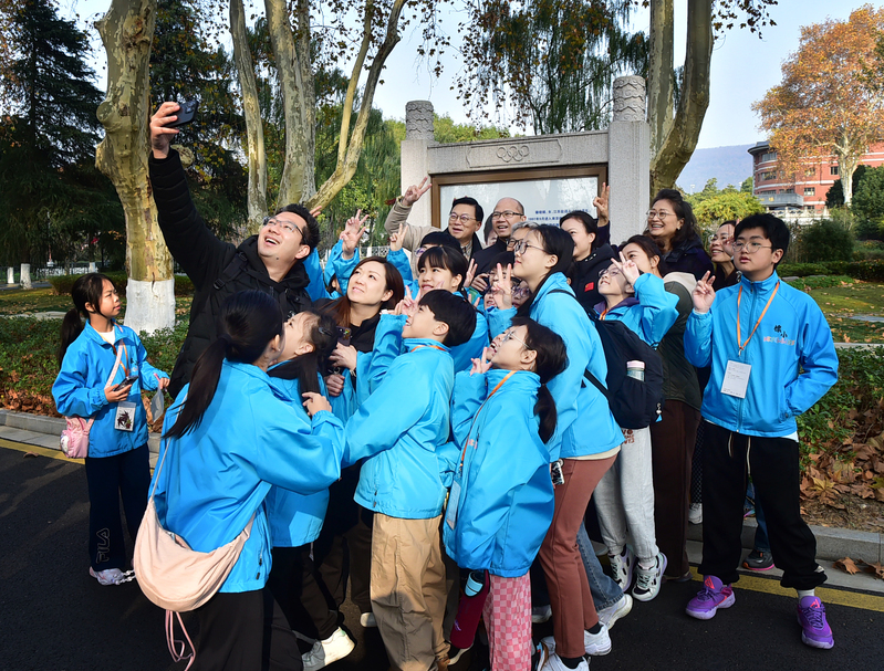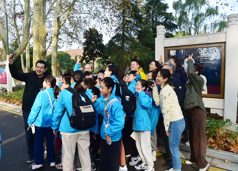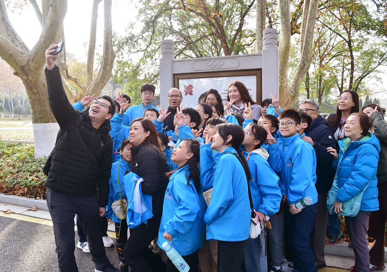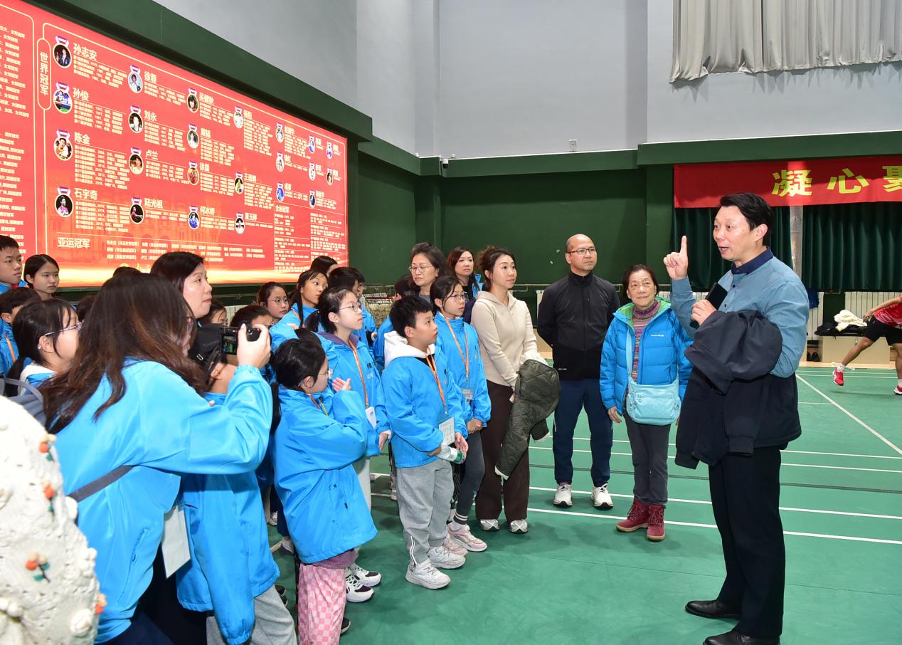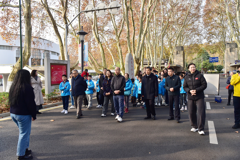 参访活动中,黄锦良先生一行在学校党委统战部工作人员的带领下,依次参观了奥运冠军大道、中央体育场建筑群等在内的“兴体报国”同心教育实践基地,以及体操蹦床馆、击剑馆、羽毛球馆、游泳馆、跳水花游馆等训练场馆。参访的师生和校董纷纷为我校在竞技体育方面取得的骄人成绩点赞,并希望今后有机会邀请更多香港地区的青少年学生来到南京、走进南体,通过体育架起友谊的桥梁,感受了解中华民族的体育历史文脉,开阔个人视野的同时促进两地青少年之间的文化交流与互动沟通。