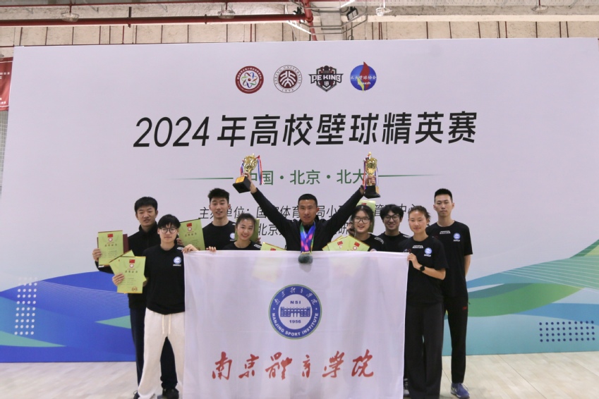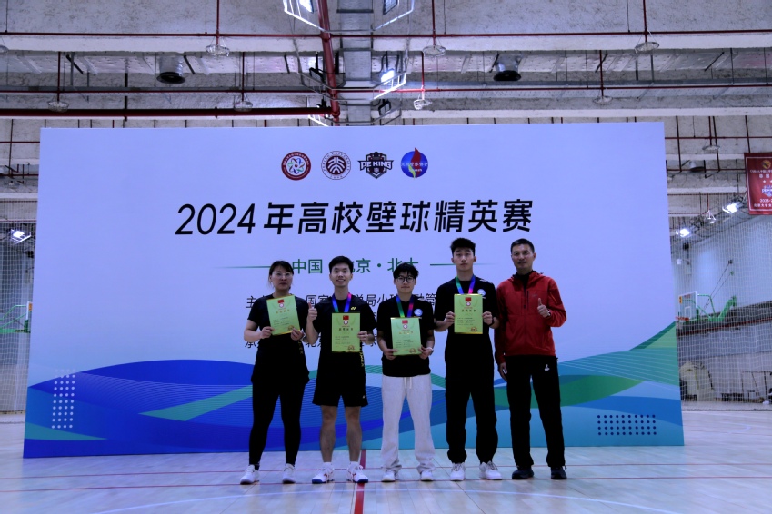 由国家体育总局小球中心主办的2024年全国高校壁球精英赛于2024年11月29日至12月1日在北京大学邱德拔体育馆壁球馆举行。本次比赛吸引了来自全国15所高校的壁球队参赛。经过两天激烈角逐,我校壁球队表现出色,荣获专业组男子团体冠军和专业组女子团体冠军。女运动员刘佳和男运动员任志强分别获得本次赛事的“最佳运动员”称号。教练员徐通获得“最佳教练员”称号。