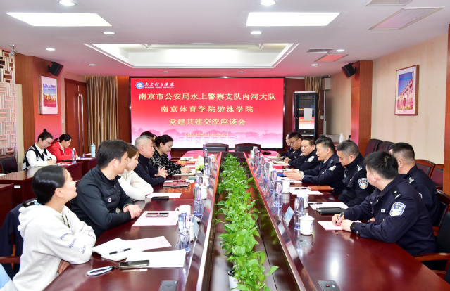 为切实加强基层党组织之间的交流与合作,进一步巩固党建共建成果,提升党建工作水平和服务社会的能力。11月28日上午,南京体育学院游泳学院党总支与南京市公安局水上警察支队内河大队党支部在行政办公楼301会议室举行党建共建交流座谈会。校党委书记刘红明在办公楼会见了南京市公安局水上分局党委副书记、常务副局长张礼祥一行。校党委常委、副校长刘健出席座谈会并致辞。南京市公安局水上分局机动大队大队长黄伟,乌江水上警察大队大队长张建,内河水上警察大队大队长郑志刚,游泳学院党总支副书记、院长王伟新,运动员党员、花样游泳奥运冠军王赐月及双方党组织党员干部、党员代表参加了会议。会议由游泳学院党总支书记骆晓娟主持。