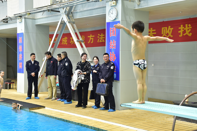 座谈交流前,在游泳学院全体党总支委员的陪同下,张礼祥一行先后参观了我校奥运冠军大道、校史馆、中国近代体育陈列馆和游泳、跳水、花游三支运动队训练场馆。