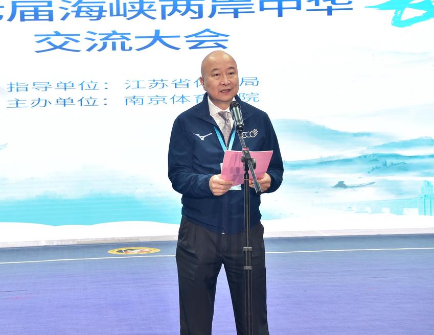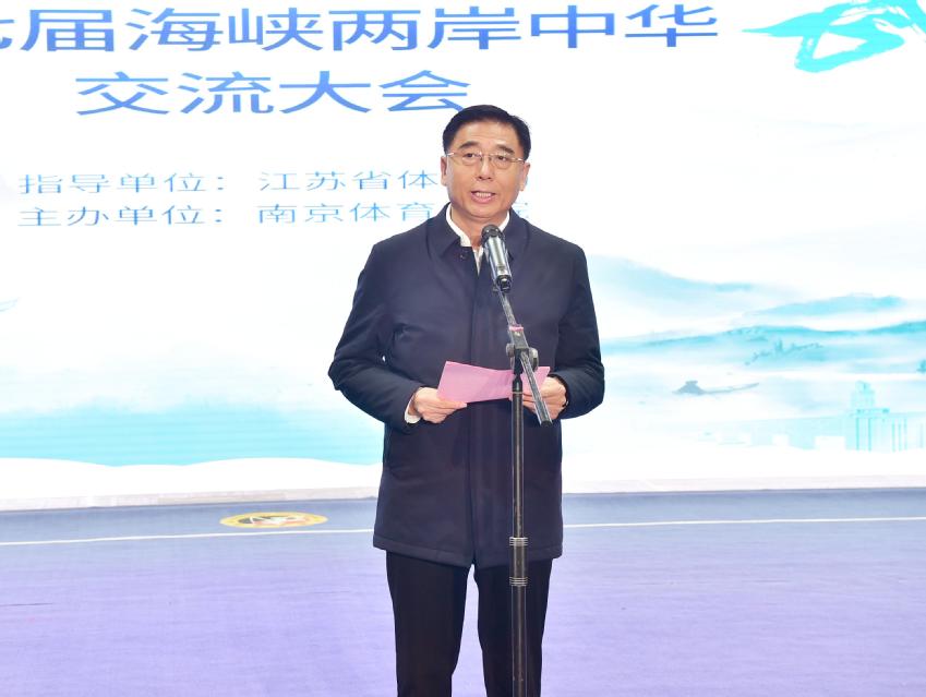 范金华在致辞中代表省体育局向本次大会的顺利召开表示热烈祝贺,向参加盛会的两岸武术界同仁、专家学者及嘉宾表示诚挚欢迎。他指出,武术是中华民族的文化瑰宝,希望通过此次大会展示两岸武术界的精湛技艺,激发更多青年学子对中华武术的热爱与追求,进一步推动武术成为连接两岸、沟通心灵的重要桥梁。青年是国家的未来之光,也是两岸关系和平发展的希望所在,希望参与本次大会的两岸青年以武会友,增进了解,互学互鉴,共同为传承和发扬中华武术、深化两岸交流与合作贡献青春力量。江苏体育界将继续秉持“两岸一家亲”的理念,不断深化两岸体育领域的交流合作,携手推动两岸武术事业的发展繁荣,共同见证中华武术在新时代绽放出璀璨光芒。