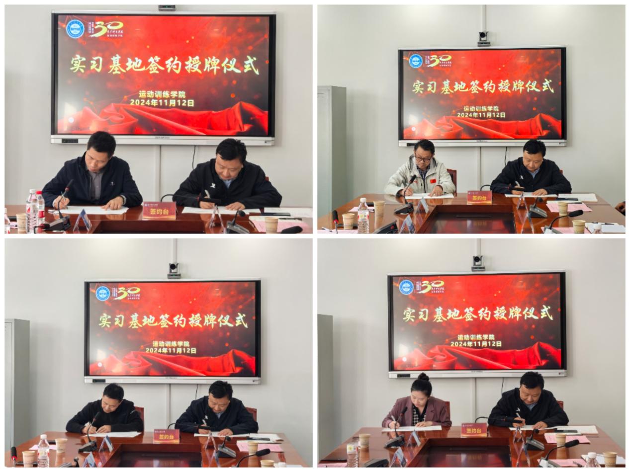 运动训练学院党总支书记葛见珠对各位嘉宾的到来表示热烈欢迎,并对他们长期以来对学院的支持和帮助表示衷心的感谢。紧接着,院长赵琦介绍了运动训练学院的基本情况,包括学院的历史、发展现状以及未来的规划。副院长张明介绍了实习基地的前期建设情况后,南京体育学院教务处副处长李强与实习基地领导签订了实习基地协议,党委常委、副校长肖爱华向实习基地授牌,标志着双方合作的正式启动。