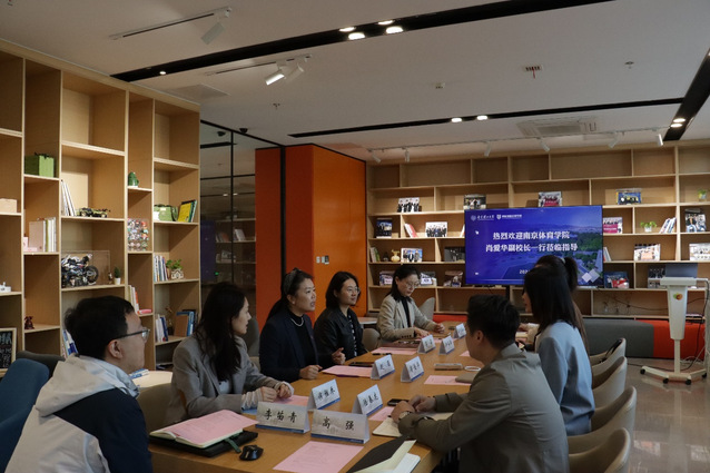 赵茜对肖爱华一行的到来表示热烈欢迎。赵茜就南京理工大学创新创业工作做了题为《“六位一体”推动双创教育高质量发展》的分享,她指出南京理工大学现已经形成了“六位一体”的双创教育模式,并简要介绍了南京理工大学双创学院的历史沿革、双创课程体系构建、双创竞赛体系的构建、双创孵化体系的构建、双创活动体系的构建、双创平台体系的构建、双创支持体系的构建等方面内容。她表示,南京理工大学愿进一步加强与南京体育学院在创新创业方面的合作,加深校际间的沟通交流,充分发挥各自学校的特色和优势,携手在创新创业工作方面共同取得新成就。