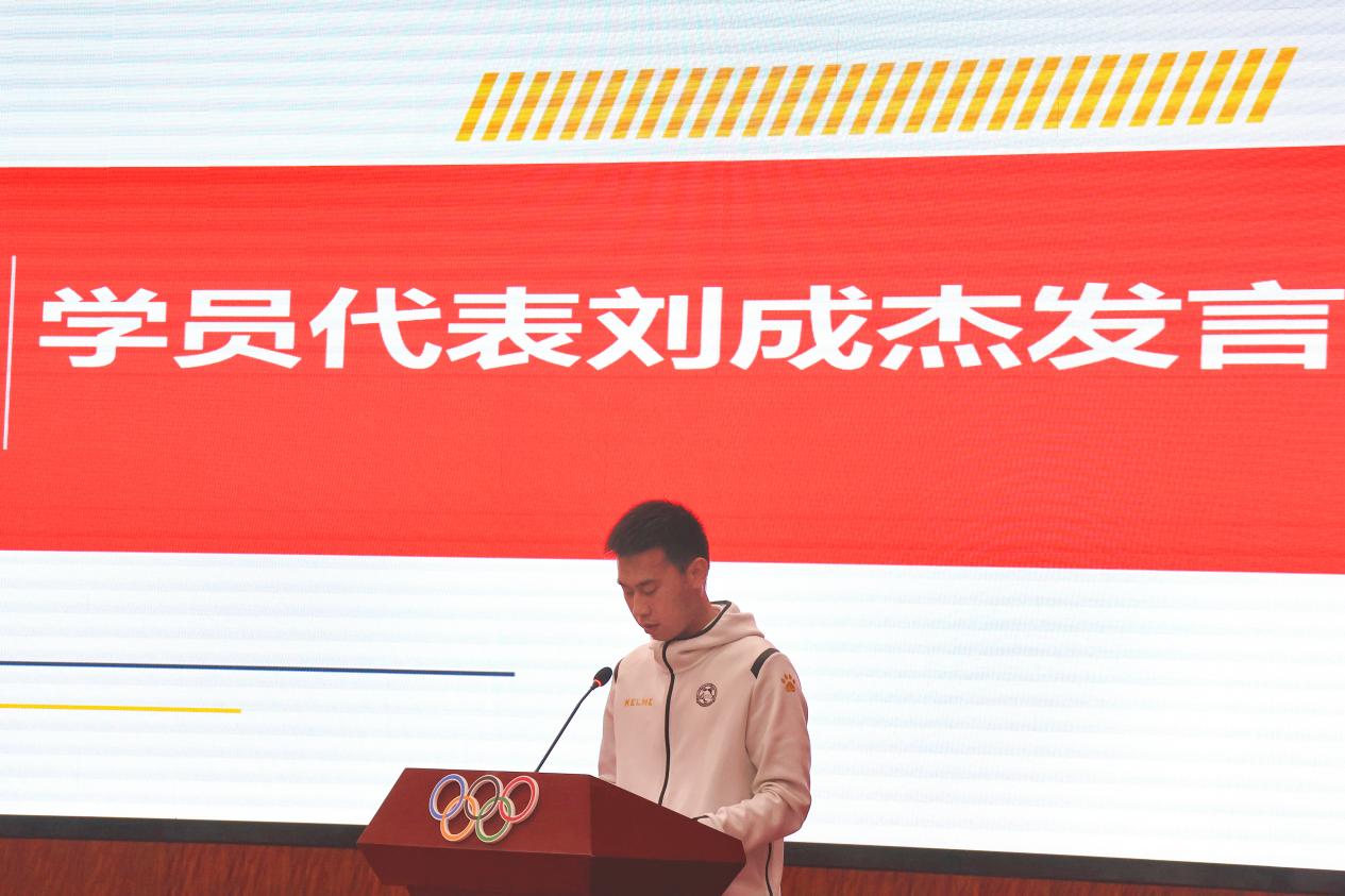 接下来教务处处长王凯宣读了足球裁判微专业设立的通知并发表讲话。现任中国足协副主席许基仁先生通过视频向开班典礼发来祝福,希望南京体院足球裁判微专业建设能培养更多优秀裁判员,为中国足球事业贡献力量。随后,罗海涛先生代表中国足球裁判部、符海琴秘书长代表江苏省足协、赵琦院长代表运动训练学院、23级研究生刘成杰代表南体学生先后发言。