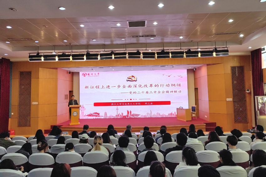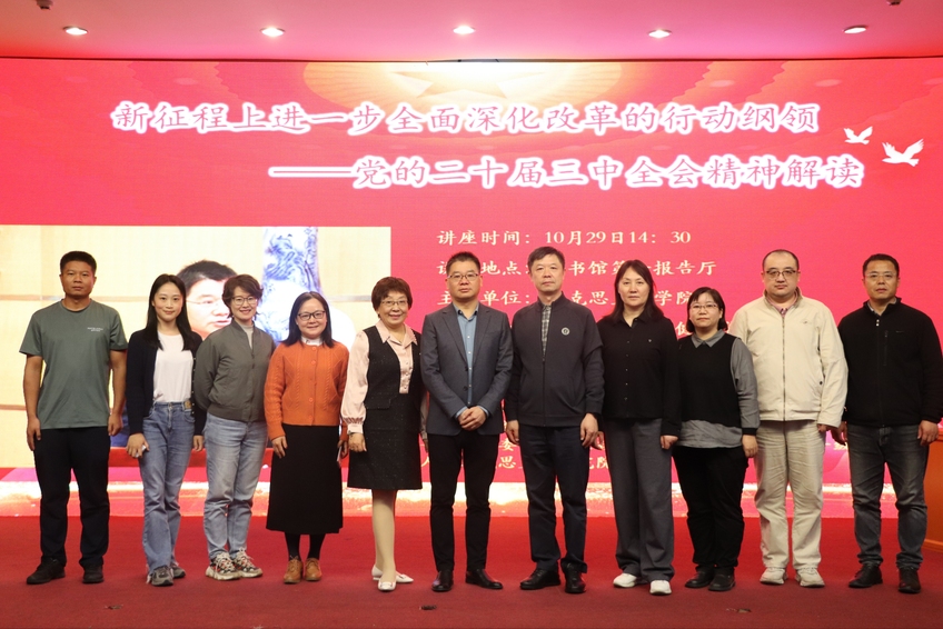 10月29日下午,马克思主义学院举办党的二十届三中全会精神专题讲座暨马克思主义学院直属党支部与运动健康学院党总支理论学习中心组联学活动。会议特邀扬州大学马克思主义学院院长胡立法教授作《新征程上进一步全面深化改革的行动纲领——党的二十届三中全会精神解读》专题辅导报告。校党委常委、副校长刘健莅临指导。会议由校科研处处长赵彦主持。本次活动由马克思主义学院主办,科研处和运动健康学院协办。校科研处负责同志,马克思主义学院直属党支部、运动健康学院党总支理论学习中心组全体成员和运动健康学院学生代表参加了本次学习。