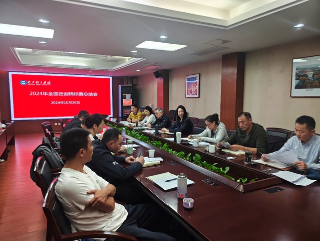 10月26日下午,击剑学院在办公楼301会议室召开2024年全国击剑锦标赛赛后总结会。校党委常委、副校长、击剑队总教练肖爱华,校党委常委、副校长刘健出席会议,江苏省体育局竞体处副处长孟洁,击剑学院直属党支部书记朱小兰,击剑队全体管理干部、教练员、队医、康复保障人员参加会议。会议由击剑学院院长沈朝阳主持。