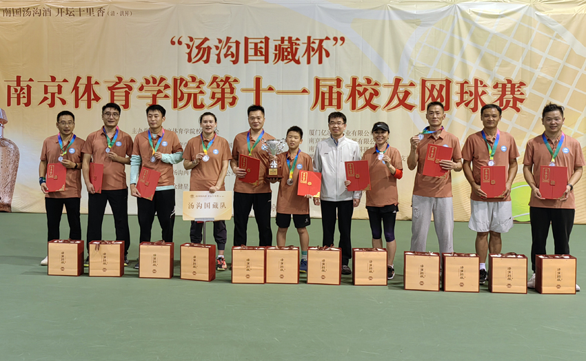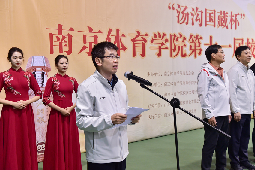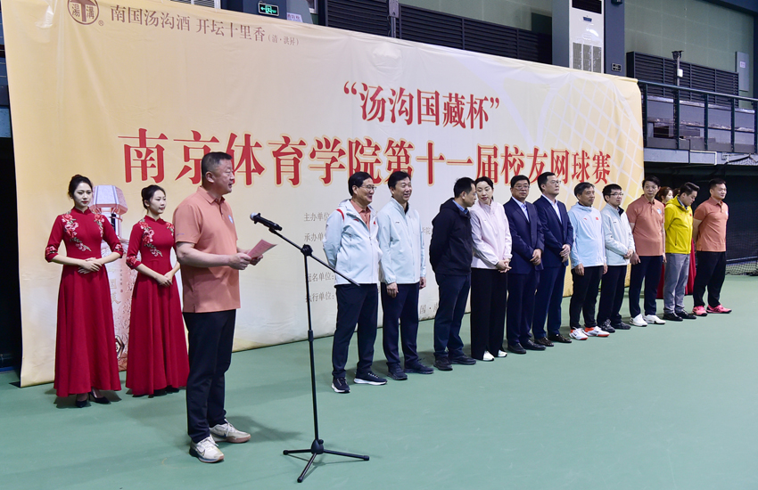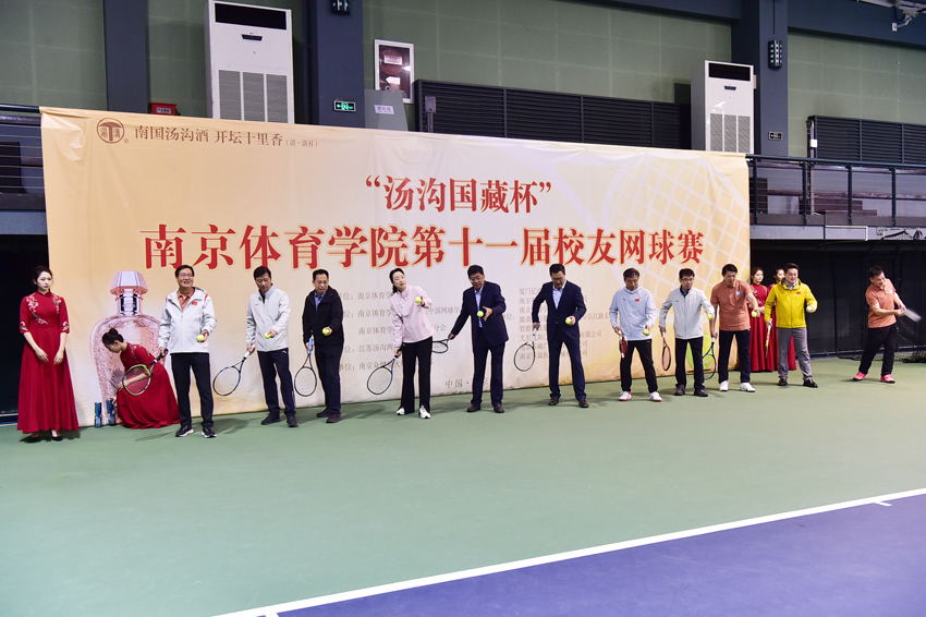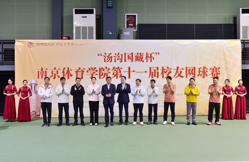 10月26日,“汤沟国藏杯”南京体育学院第十一届校友网球赛在中国网球学院隆重举行。校党委书记刘红明,校党委副书记、校长杨国庆,校党委副书记、校友总会会长兰亚明,校党委常委、副校长鲍勤,汤沟两相和酒业有限公司党委书记、董事长朱耀汇,校友总会网球分会会长、南京银行城东支行行长周强出席开幕式,校党委常委许立俊、王猛、殷怀刚参加活动。