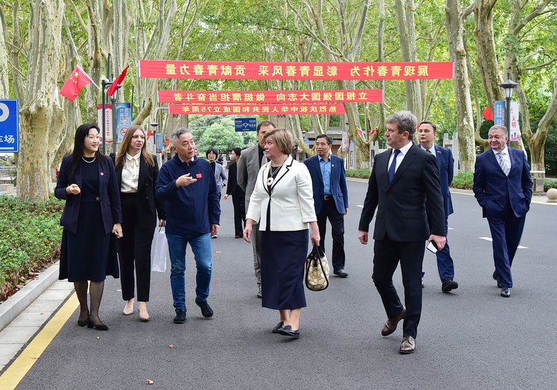 拉祖蒂娜曾获俄罗斯联邦英雄勋章,并在国际体育赛事中取得了非凡的成就,包括五次奥运会冠军、十一次世界比赛冠军及两次冬季世界杯冠军。在她此次访问期间,代表团参观了南京体育学院的奥运冠军大道、中央体育场、体操学院和游泳学院等场馆,现场观看了体操、蹦床、游泳和花样游泳等项目的训练。拉祖蒂娜对南体健儿展现出的独特风采及学校的竞技体育发展历程表示钦佩。