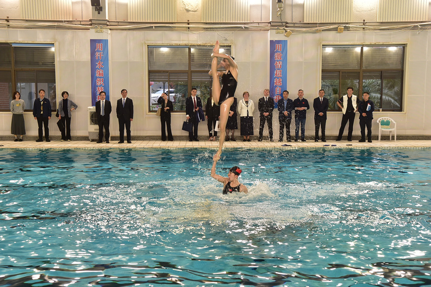 观看花样游泳训练
