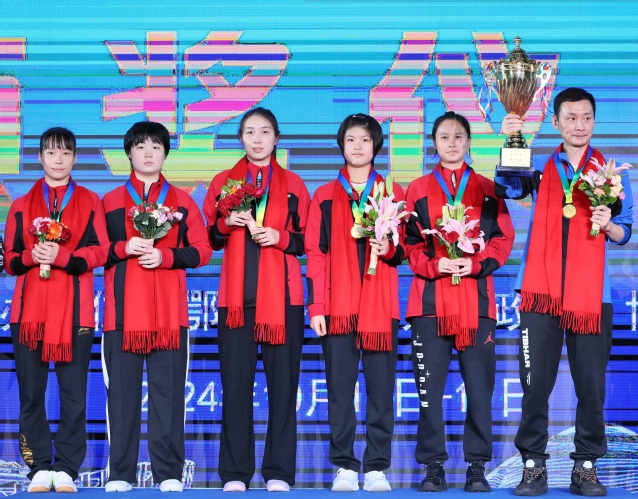 10月19日晚,2024年全国乒乓球锦标赛女团决赛在内蒙古鄂尔多斯落下帷幕,乒羽学院乒乓球队代表江苏以3比2战胜上海队,蝉联冠军。蒯曼拿下两分成为夺冠最大功臣,钱天一/石洵瑶双打拿分。