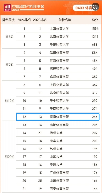 2024软科中国最好学科排名(体育学)