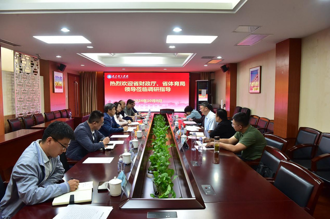 10月9日上午,省财政厅教科文处处长李海峰、省体育局经济处处长王峰一行莅临我校开展经费预算专题调研。校党委书记刘红明,校党委常委、副校长肖爱华,校党委常委、副校长鲍勤,资产管理处,后勤处,仙林办,计划财务处等部门负责人及相关人员参加调研活动。