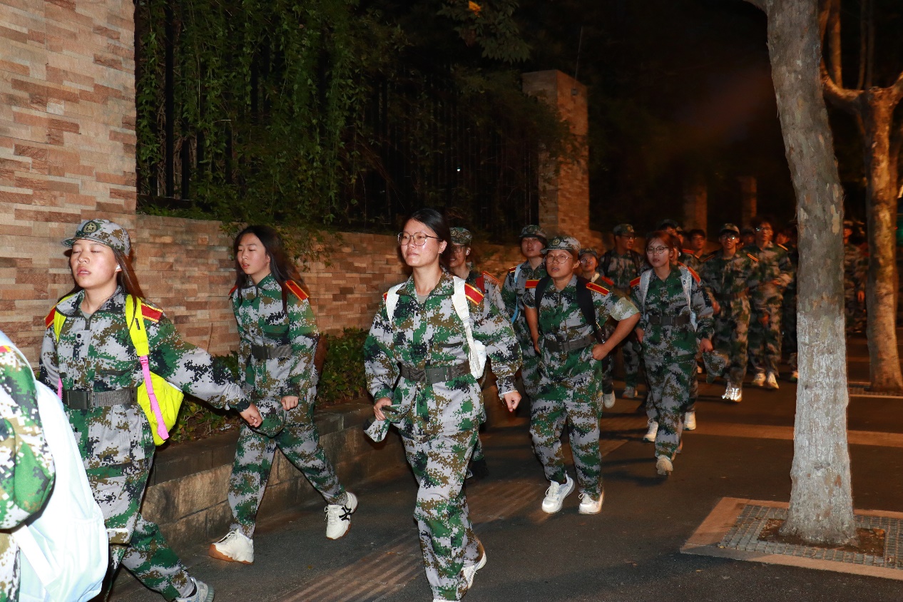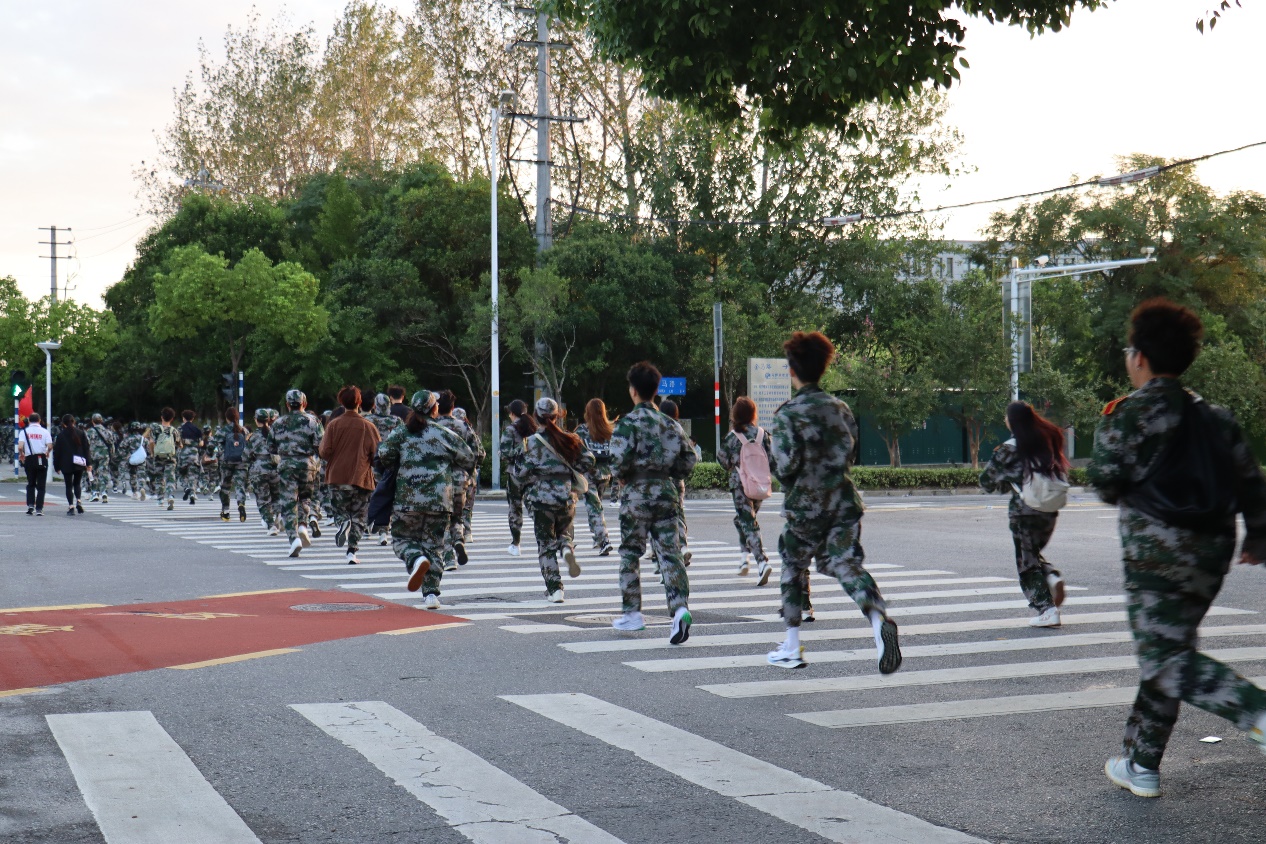 正值天高云淡,秋凉气清,在熹微的晨光中,同学们精神饱满地开始了拉练活动。拉练过程中,同学们始终保持积极昂扬的精神面貌,坚决执行教官在行进中的指令,始终保持良好的队列阵型。大家还互相鼓励,并在教官组织下唱起《团结就是力量》《学习雷锋好榜样》等歌曲打气。经过近两个小时的行进,两校区同学成功于仙鹤门会合。