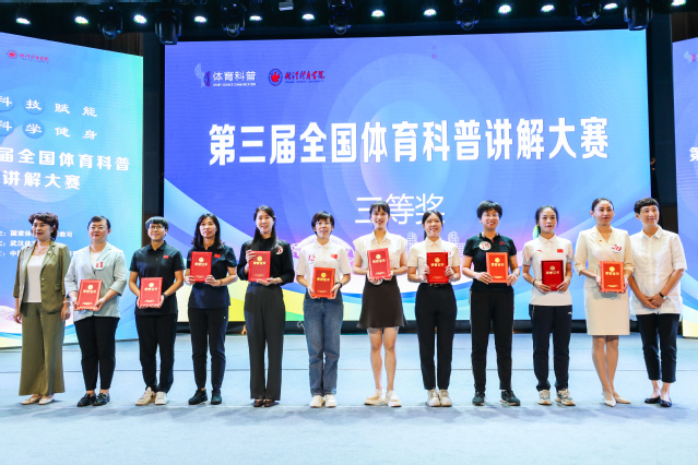 第三届全国体育科普讲解大赛由体育总局科教司主办,武汉体育学院承办,中国体育科学学会科普工作委员会协办,以“科技赋能,科学健身”为主题,旨在展示体育科技成果、推广科学健身知识、倡导科学运动方法,推进体育科普事业高质量发展。本次大赛汇集了来自全国各地体育单位和院校的参赛者,比赛分为预赛和决赛两个阶段,通过线上评审和线下比赛最终决出一、二、三等奖和优秀奖,另设“第三届全国体育科普讲解大赛优秀组织奖”。