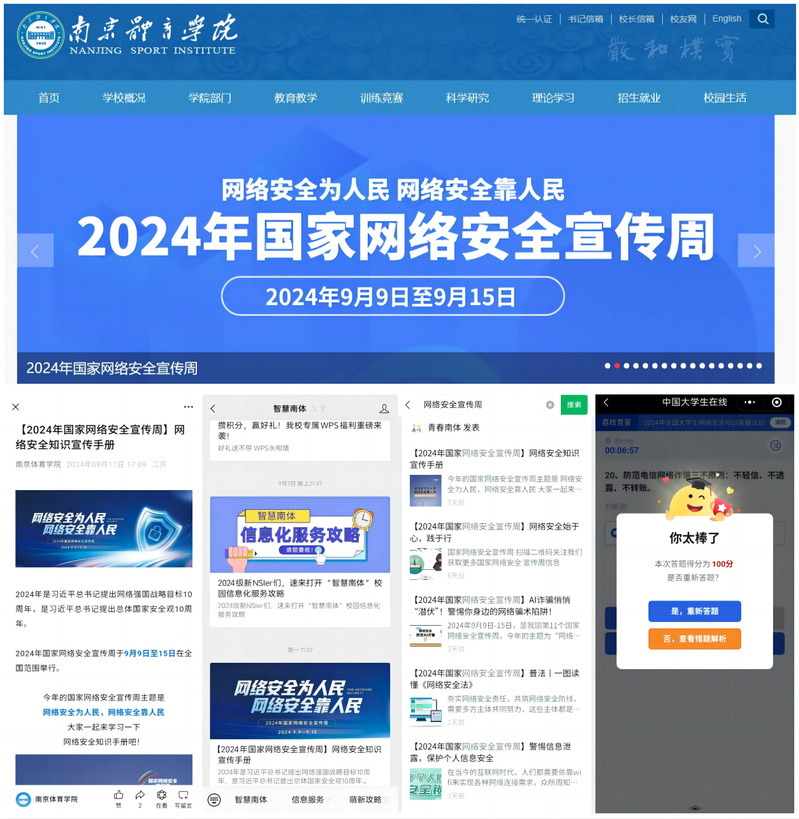 根据教育部思想政治工作司、江苏省委网信办、江苏省教育厅办公室《关于组织开展网络安全宣传周以及校园日宣传活动的通知》要求,学校以“网络安全为人民,网络安全靠人民”为主题,于9月9日至15日开展第十一届“国家网络安全宣传周”。通过线上线下相结合的方式,全面深化了学校师生的网络安全意识,确保了网络安全人人参与、人人有责、人人共享的理念深入人心。
