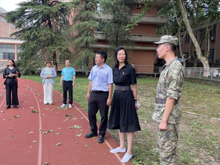 军训现场,肖爱华听取了承训部队关于军训工作开展情况、学生训练进度和具体表现的汇报,对他们的带训作风、训练安排以及学生关怀等工作予以赞扬,向各二级学院参训教师详细了解参训学生的身体、心理、生活情况,叮嘱承训教官要科学带训,参训辅导员、班主任要实时关注学生的健康状况,同时对同学们刻苦训练表示充分肯定,希望大家齐心协力,顺利完成军训任务。