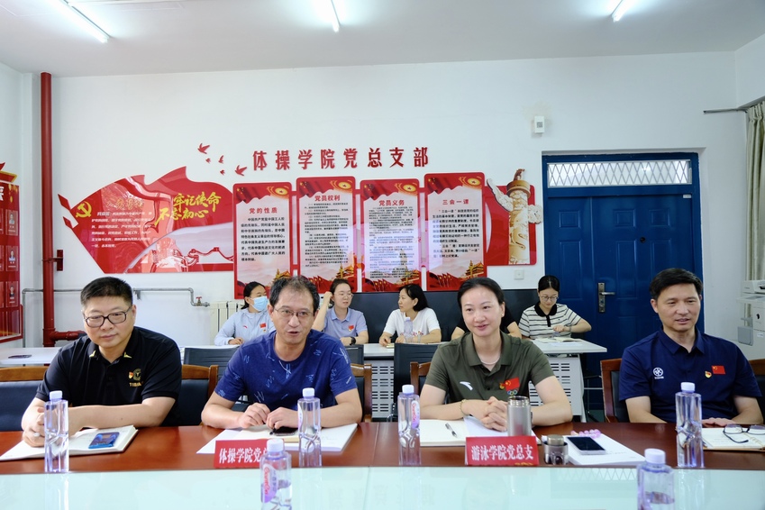 参加调研会的还有党委组织部和党委宣传部相关工作人员、游泳学院、体操学院党政领导班子、领队等。