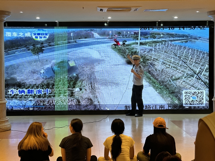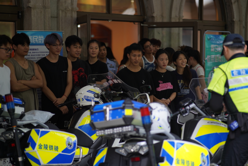 活动现场,南京交警一大队民警李飘羽和三大队的民警刘宁组织学生,通过交通安全知识比赛问答、安全小游戏、播放安全事故视频并配套讲解等形式,向学生传达交通安全无小事的理念,告诫学生出门在外务必把安全出行放在第一位,知危险、会避险,不能有松懈和侥幸心理。活动现场,民警们还为同学们展示了安全带正确使用方法,来自南京交警机动大队的6位铁骑队员与还带来了英姿飒爽的警摩驾驶技术展示,吸引了众多师生观看。