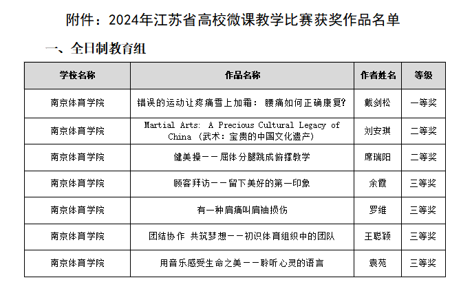 近日,2024年江苏省高校微课教学比赛已公示比赛结果,我校推荐10项参赛作品,共获奖7项,其中一等奖1项,二等奖2项,三等奖4项。
