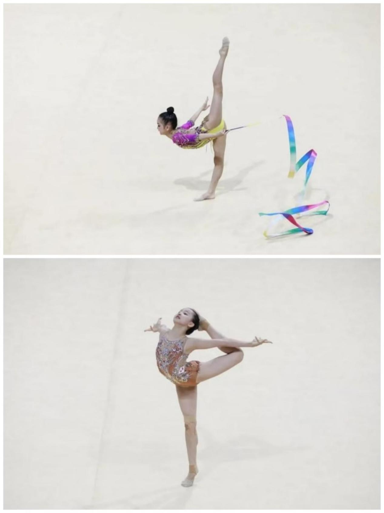 少年A组、C组运动员苏墨涵、江睿萱徒手、带操比赛现场