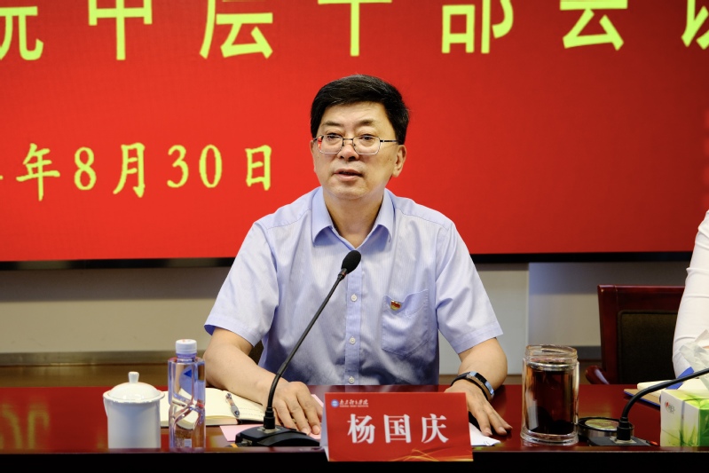 杨国庆在主持会议时就扎实有效做好今年下半年各项工作提出要求。他强调,一要迅速传达会议精神,凝心聚力推动发展。全体中层干部要深刻认识会议的重要意义,第一时间组织各部门、各单位人员开展专题学习,将会议精神“学进去”“带回去”“落下去”,确保全校各级党员干部和师生员工在思想上与学校保持高度一致、在行动上与学校始终同向同行,进一步凝心聚力、提振精神,在“干工作、带队伍、抓改革、谋发展”中彰显新担当、展现大作为。二要时刻紧盯目标任务,全力推进工作落实。各部门、单位要毫不含糊地坚持目标导向,充分发挥主体作用,围绕“发展怎么办、工作怎么干”,团结带领全校教职员工,对照年度工作目标,全面分析当前形势,逐条逐项厘清关键要点、开展挂图作战,针对申博工程、全运会备战、办学空间拓展等重点难点问题,持续开展专项攻坚,坚持将教育教学、训练备战、学科科研、管理服务等各方面工作做到细处、做到实处,有效保障全年各项目标的圆满完成,扎实确保年度综合考核实现“争先进位”。三要全面强化协调联动,不断提升工作质效。各部门、单位要进一步强化协调联动意识,增强对上联系、突破发展“高限”,紧密联系师生、畅通下情上达,从全局的高度谋划工作、用长远的眼光分析问题、以协调的步调推进工作,全面构建起“横向到边、纵向到底”的工作协同新格局,以全新的奋斗面貌和更优的工作业绩为学校办学事业迈上新台阶奠定坚实基础。