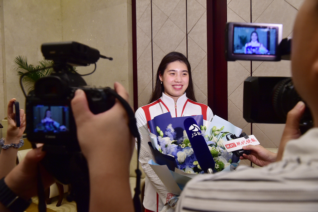 南京体育学院党委常委、副校长刘健,党委常委、党委宣传部部长、党委统战部部长许立俊,党委常委、党政办主任王猛,游泳学院党总支书记骆晓娟,游泳学院院长王伟新,省游泳队副领队孙世昆等到南京南站迎接。