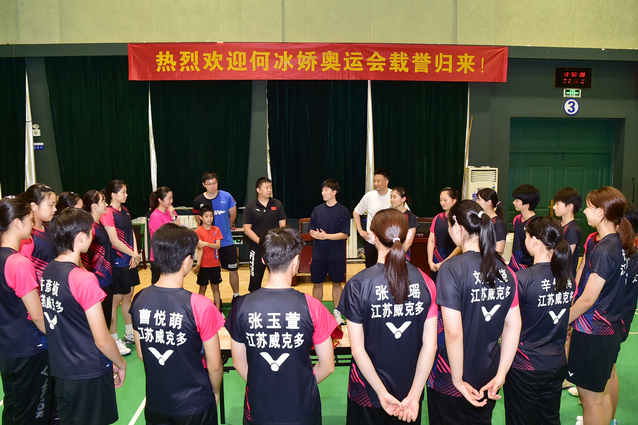 随后何冰娇回到了阔别已久的南体羽毛球馆,与教练和队友一同分享了巴黎奥运会的收获和感受。