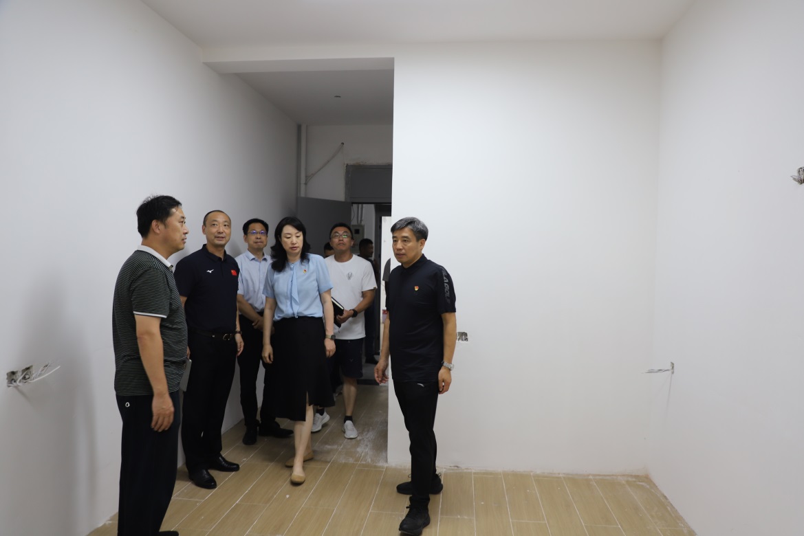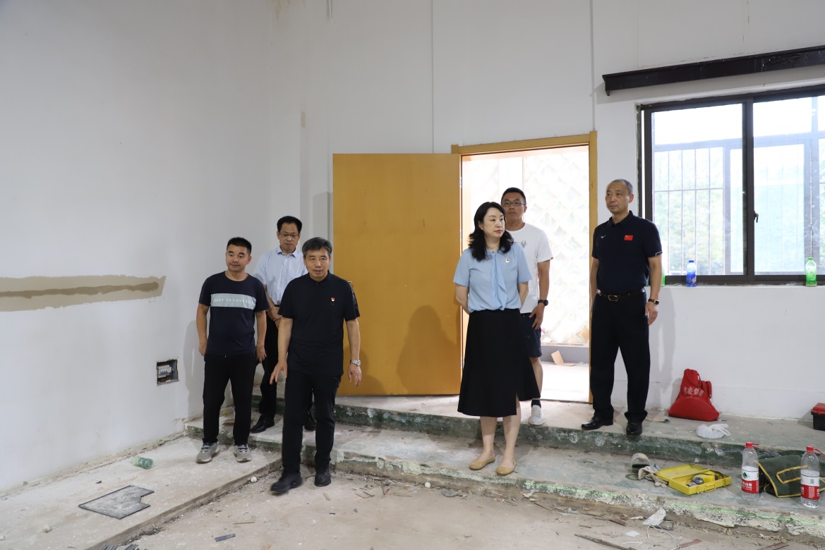 8月14日下午,党委书记刘红明,党委常委、副校长鲍勤深入暑期维修改造项目现场,检查工程进展情况。