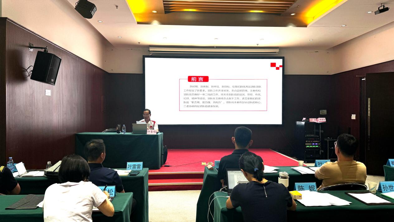 许秋红对各位参训学员的到来表示热烈欢迎,并向共同承办本次培训班的南京体育学院继续教育学院表示最诚挚的感谢。她表示巴黎奥运会刚刚落下帷幕,十五届全运会战火又将燃起,为全力做好全运会备战参赛各项工作,有效提升备战工作质量和效益,局党组高度重视优秀运动队训练管理干部的培训培养工作,结合备战工作实际需要,精心设计课程,邀请了相关专家进行集中授课,旨在通过学习进一步提升训练管理干部的业务能力,强化责任担当,为全面保障运动队备战参赛提供科学完善的服务保障,在十五届全运会上继续为优秀运动员保驾护航。领队作为运动队思想政治、日常管理的第一责任人,任务艰巨,使命光荣,在团队中发挥着不可替代的重要作用。当前十五届全运会备战工作时间紧、任务重,领队等管理干部要旗帜鲜明讲政治,切实增强为国争光为省添彩的意识和本领放在首位;要强思想转作风,着力锻造运动队的思想作风和工作纪律;要严格队伍管理,聚焦重点项目、重点人,敢管会管善管;要善于沟通协调,凝聚运动队团结协作、为国争光为省添彩的精气神。她从充分认识开展培训工作的重要意义和珍惜机会端正态度两个方面对参训学员提出了具体要求。