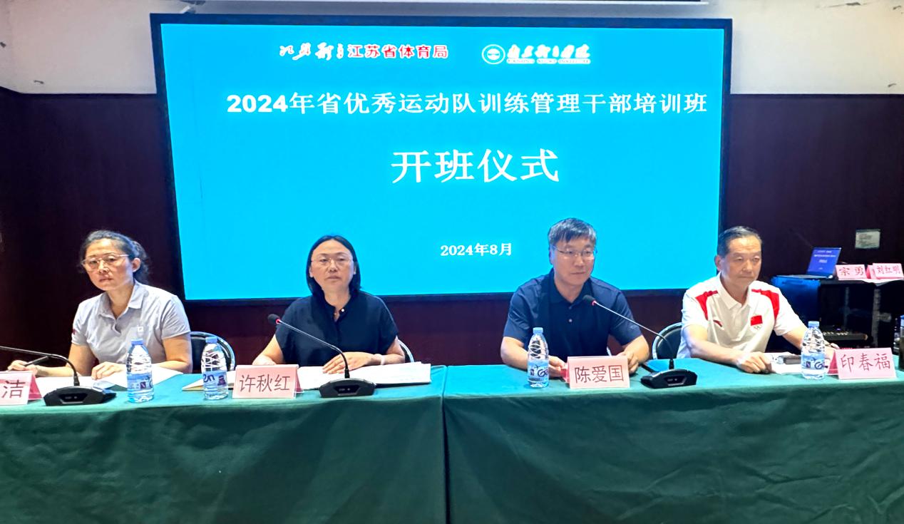8月13日下午,2024年省优秀运动队训练管理干部培训在我校仙林校区开班。江苏省体育局二级巡视员、竞技体育处处长许秋红,南京体育学院党委常委、副校长陈爱国,授课专家印春福与来自省内各训练基地的近60位优秀运动队、竞训部门负责人和管理干部出席开班仪式。省体育局竞技体育处副处长孟洁主持开班仪式。