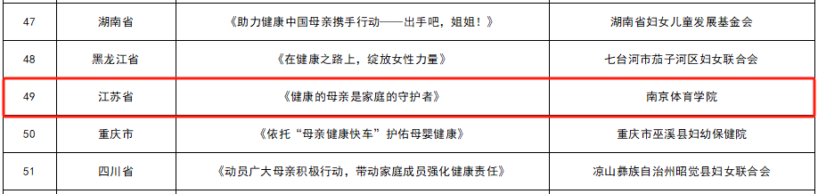 2023年,我校在江苏省妇女联合会、省体育局的指导下,围绕“健康中国 母亲行动”要求,结合“幸福江苏”工作实际,以“健康的母亲是家庭的守护者”为主题,推出旨在服务母亲和未来母亲的“江苏省百村女性社会体育指导员培训工程”,同时配套组织开展“2023年江苏省科学健身环省行”等系列活动,活动以巾帼志愿者、女性典型为主要培训对象,包括积极参与全民健身活动的广大农村女性,以全面提高素质,倡导文明生活方式,发挥母亲在家庭中健康指导员、管理员、督导员作用,带动广大农村群众参与体育锻炼。